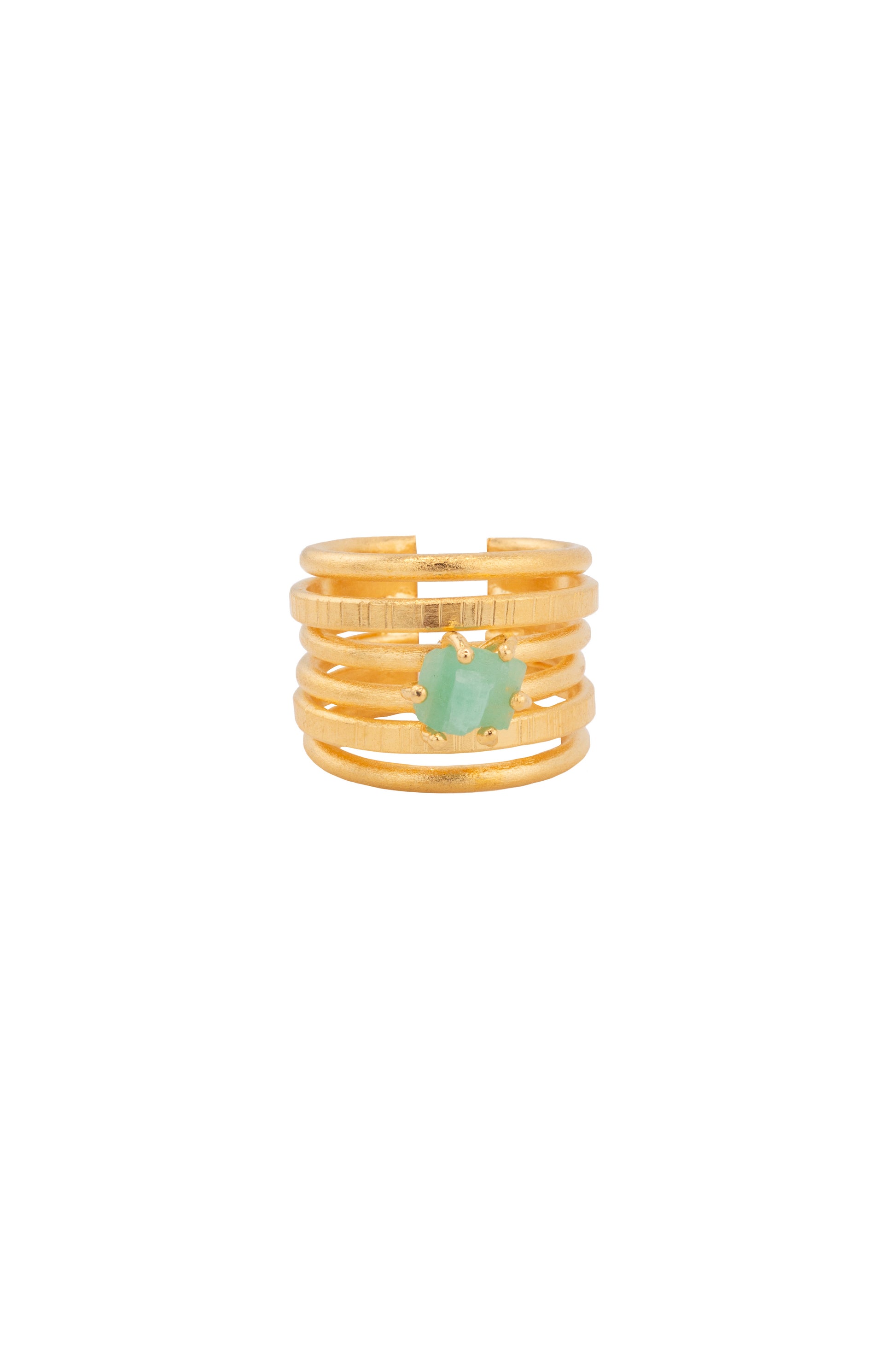 - bronce con baño en oro de 24 kilates y esmeralda en bruto.