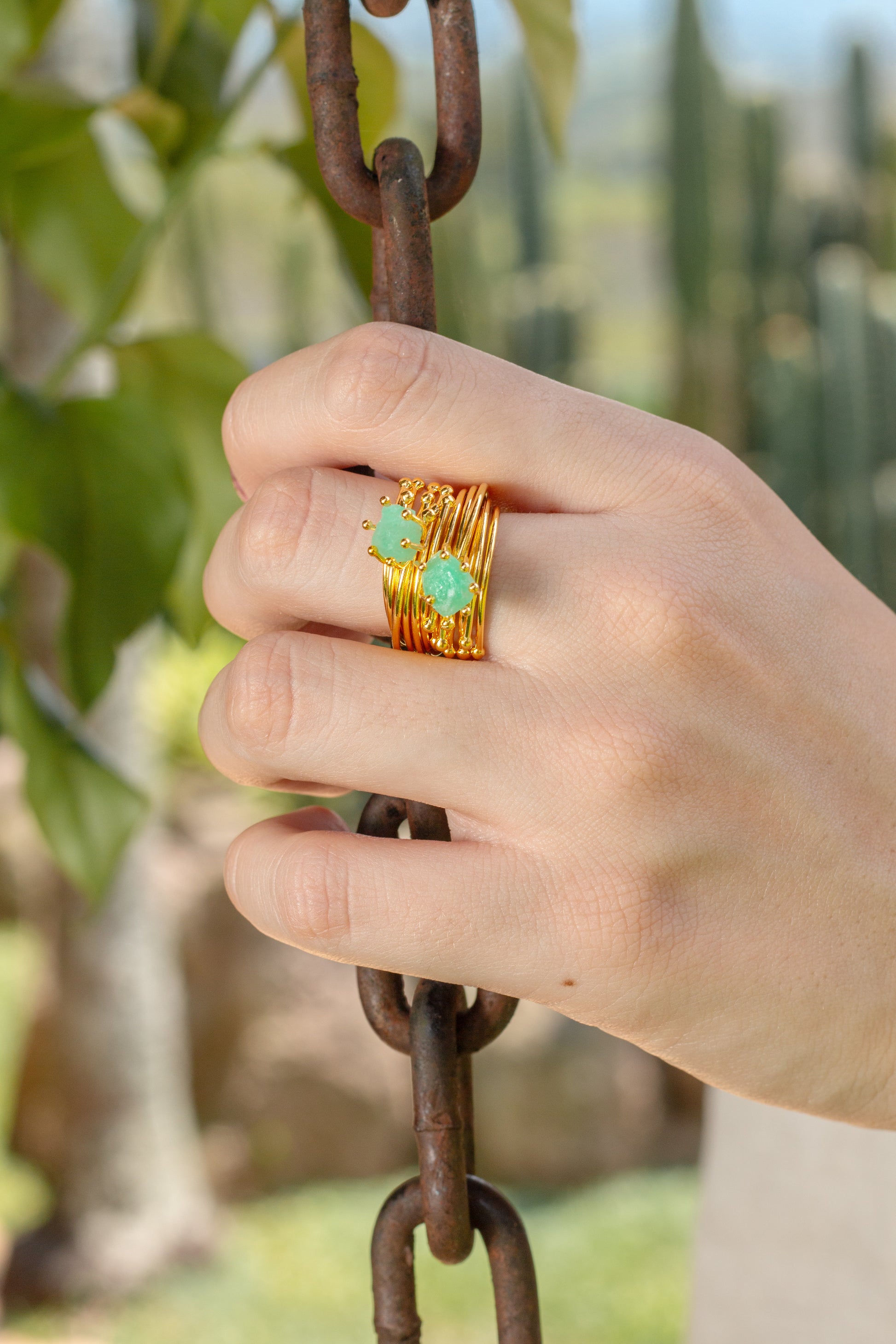 - bronce con baño en oro de 24 kilates y esmeralda en bruto.
