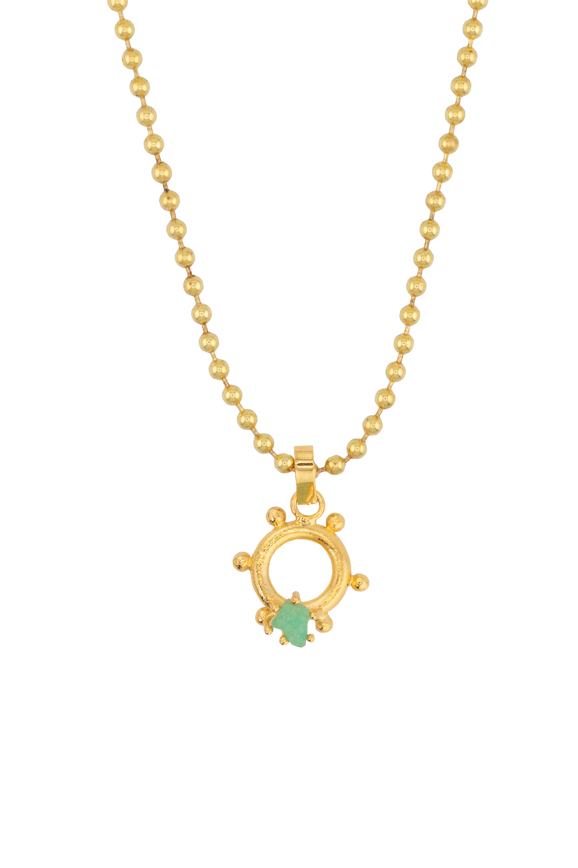 - bronce con baño en oro de 24 kilates y esmeralda en bruto.