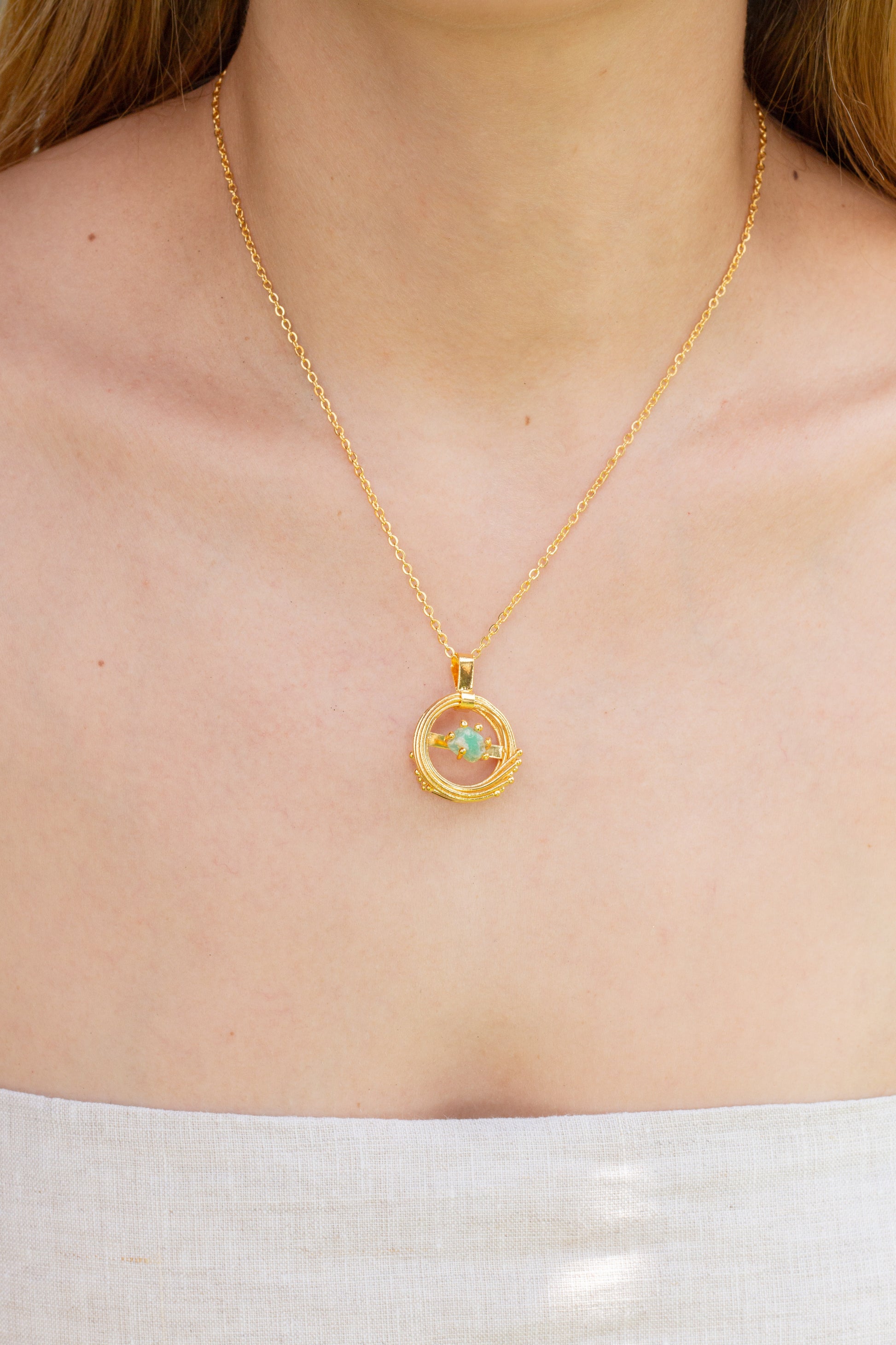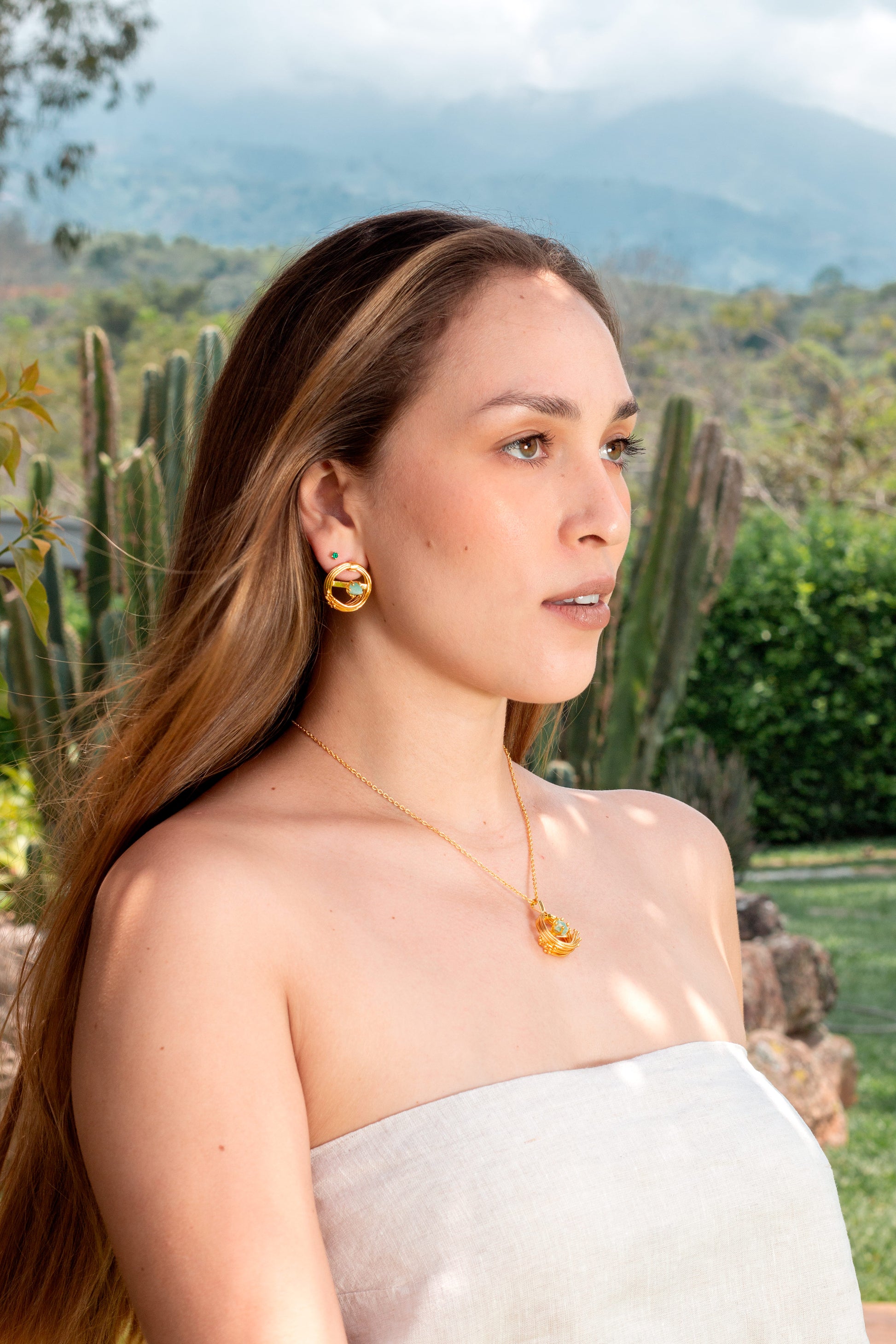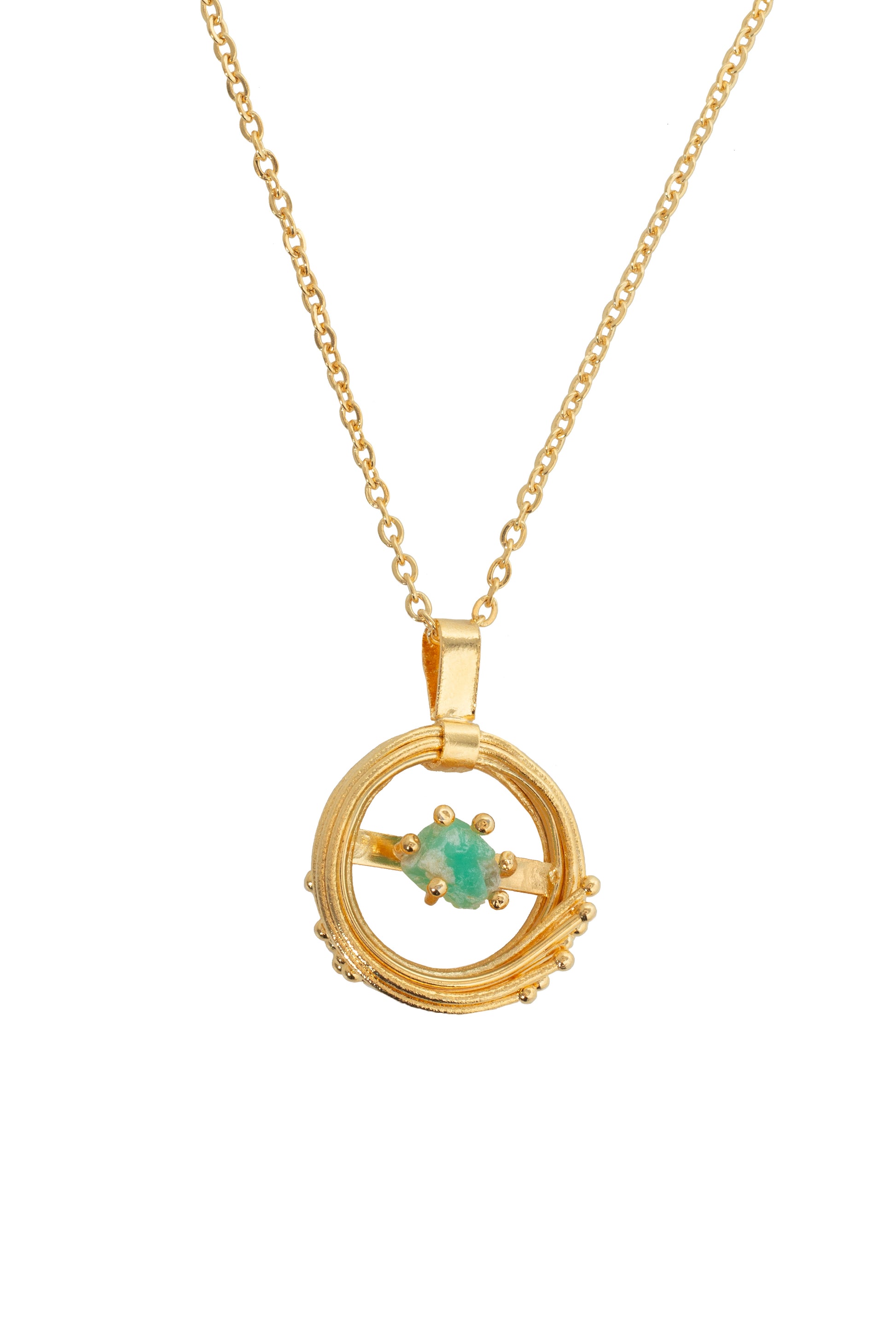 - bronce con baño en oro de 24 kilates y esmeralda en bruto.