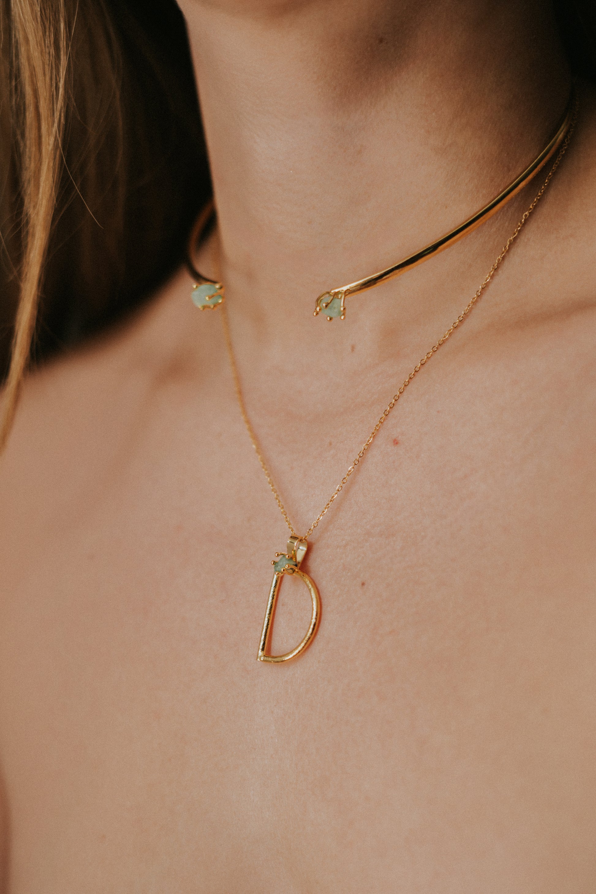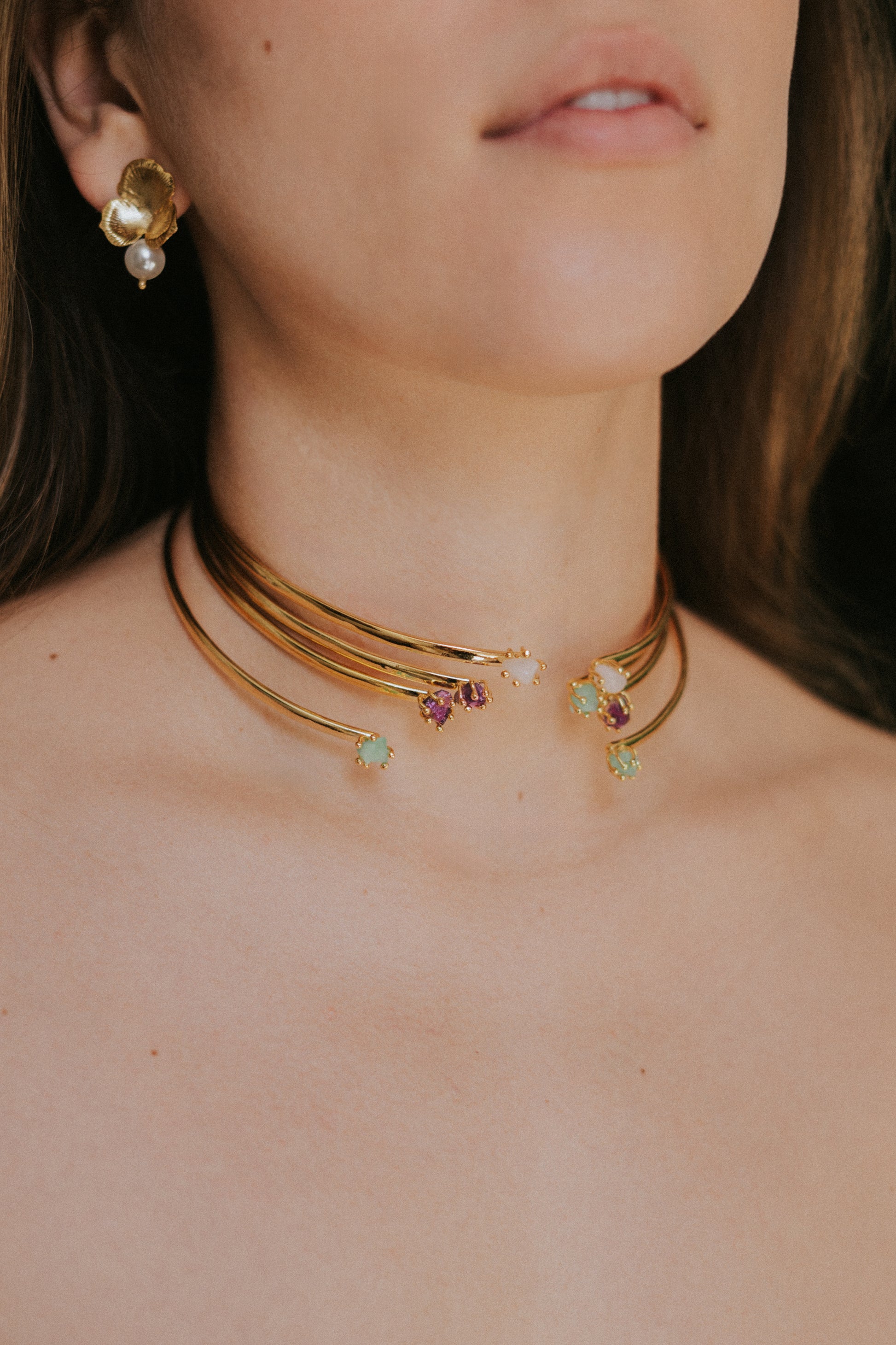 Choquer ajustable en bronce con baño en oro de 24k y piedras naturales